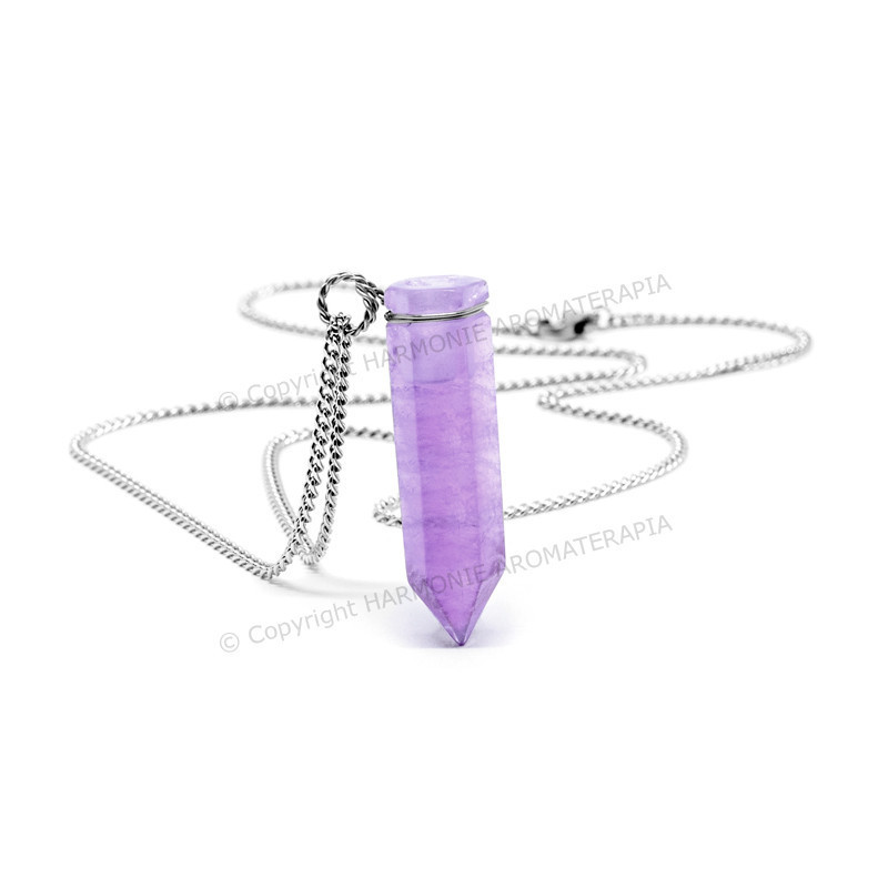 Difusor pessoal de pedra lapidada em formato de ponta. Incluso cordão de aço inox