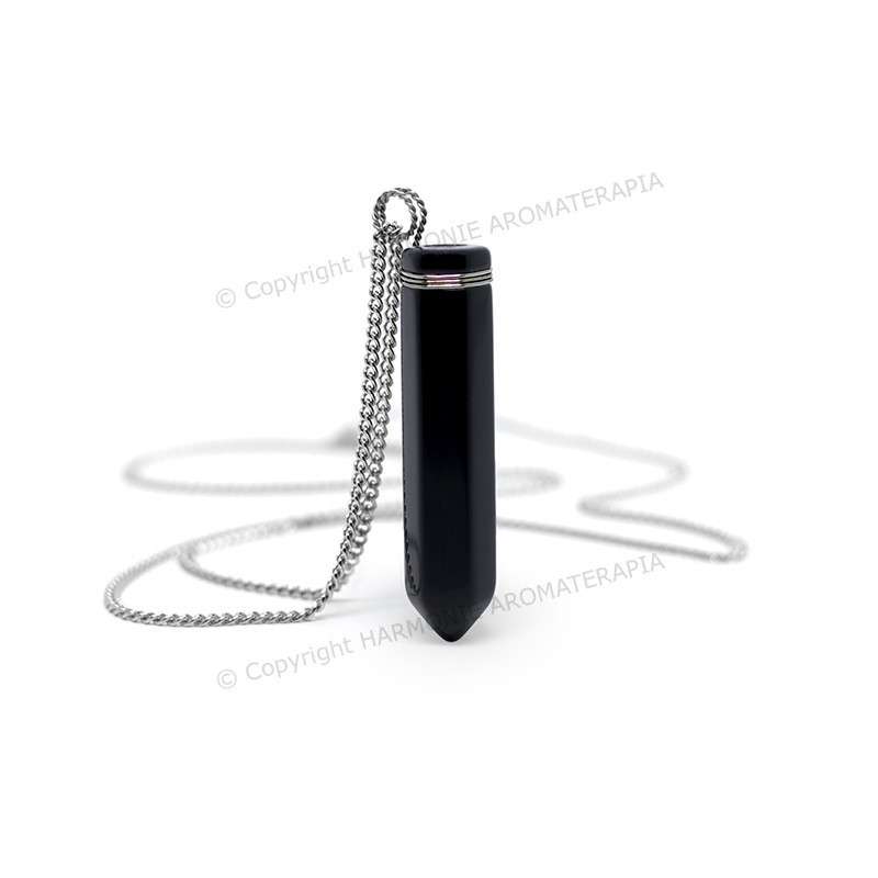 Difusor pessoal de pedra lapidada em formato de ponta. Incluso cordão de aço inox