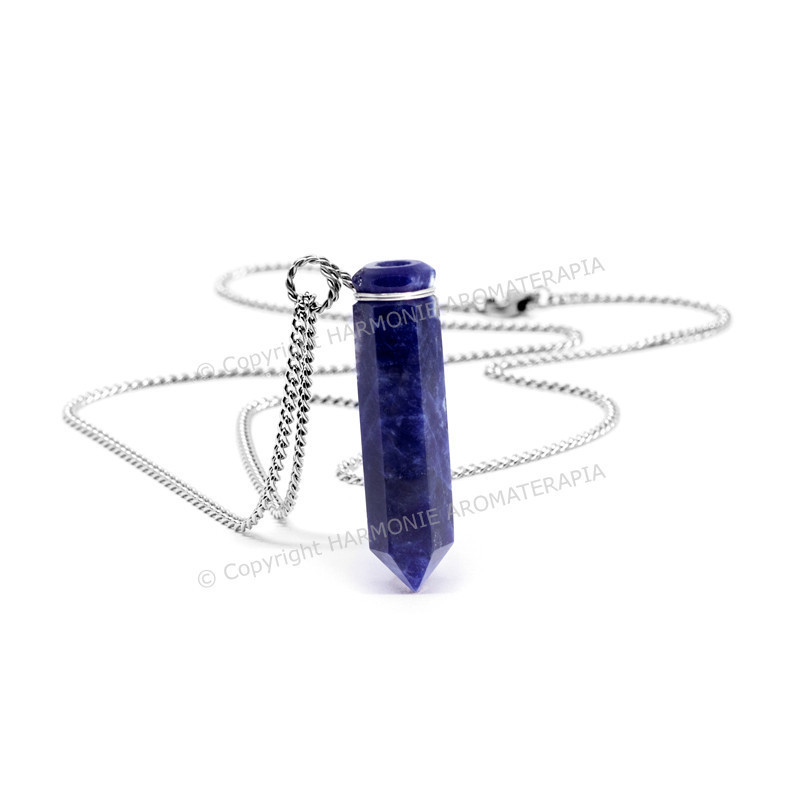 Difusor pessoal de pedra lapidada em formato de ponta. Incluso cordão de aço inox