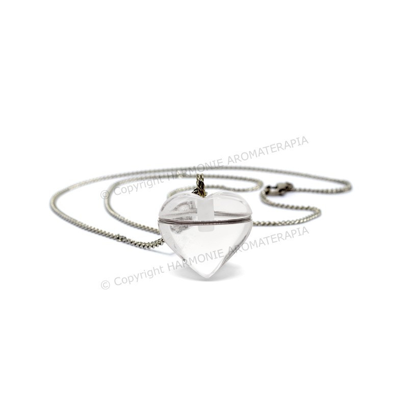 Difusor pessoal de pedra lapidada em formato de coração, com cordão de aço inox.