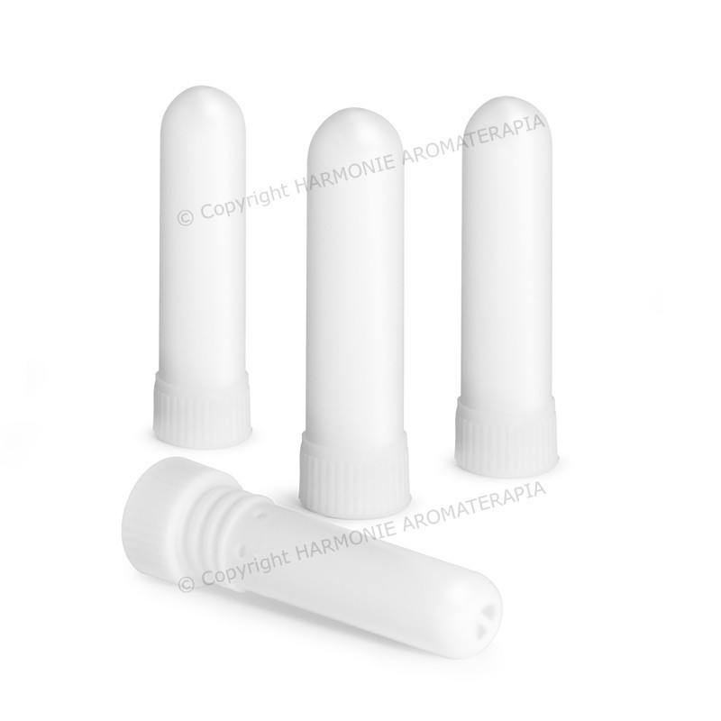 Inalador pessoal de plástico branco, com refil de algodão incluso.