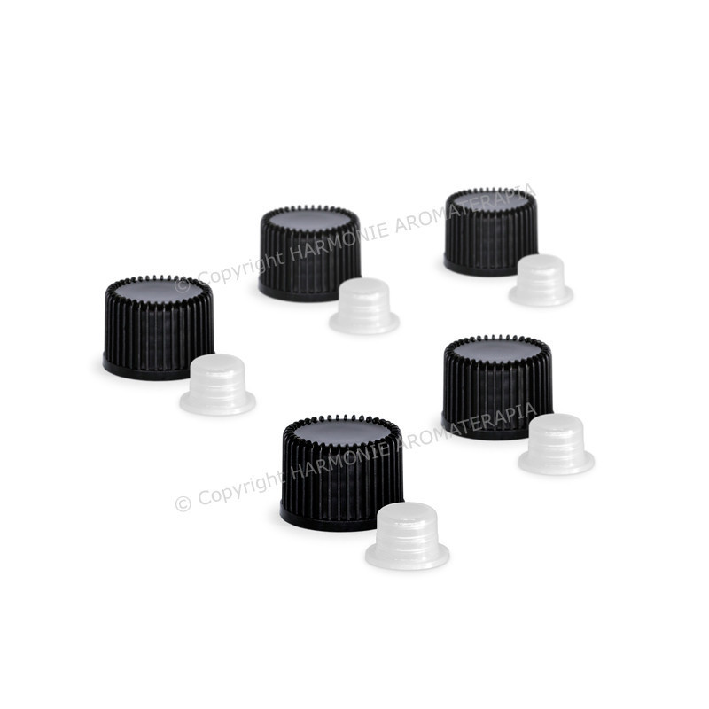 Tampa preta e batoque para Frasco 1ml - 5 unidades